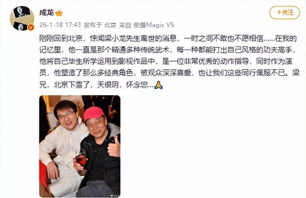 梁小龙走了,没人提他多厉害,可武行真快没了今天早上我在朋友圈刷到成龙发的图,说梁小龙已经去世了,没提到他是怎么走的,也没说是在哪里走的,就一句话配上张老照片,这个人挺奇怪的,明明是动作片里打得很扎实的一个演员,结果走的时候连个正式消息都没有,那天北京下着雪,他刚从香港回来,没有人去接他,也没有人公布他的行程。